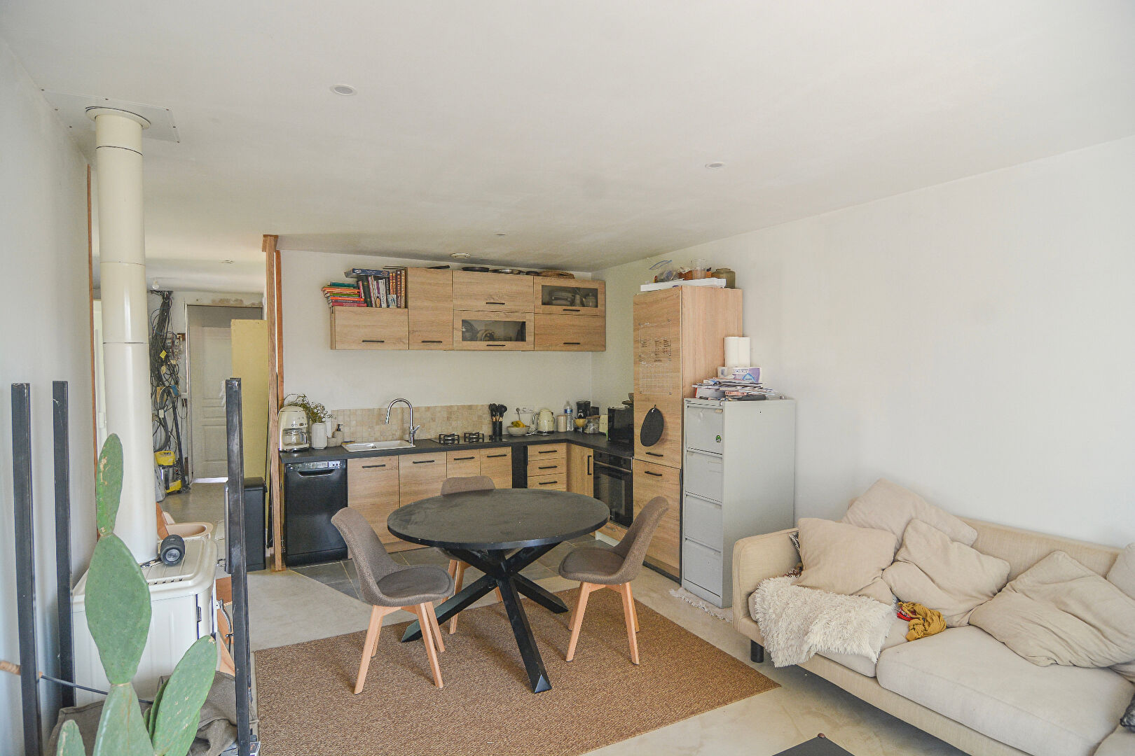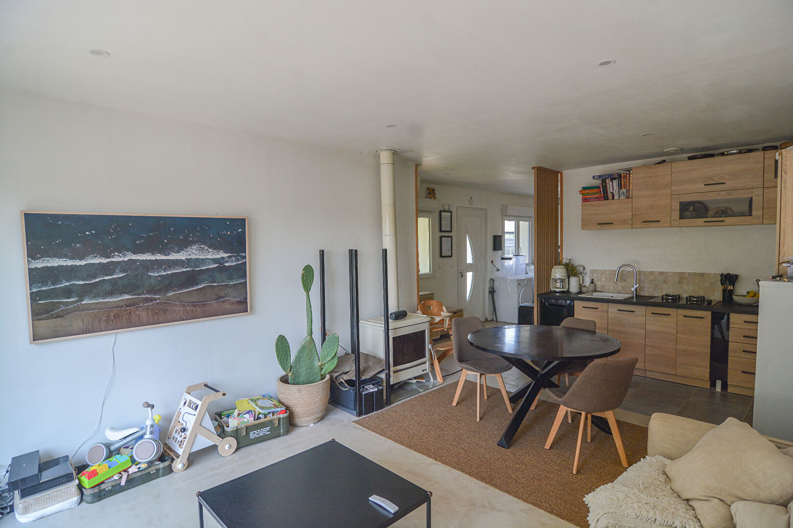 Vous découvrirez un agréable séjour exposé Ouest avec cuisine ouverte aménagée et équipée, proposant de nombreux rangements et donnant sur le jardin.