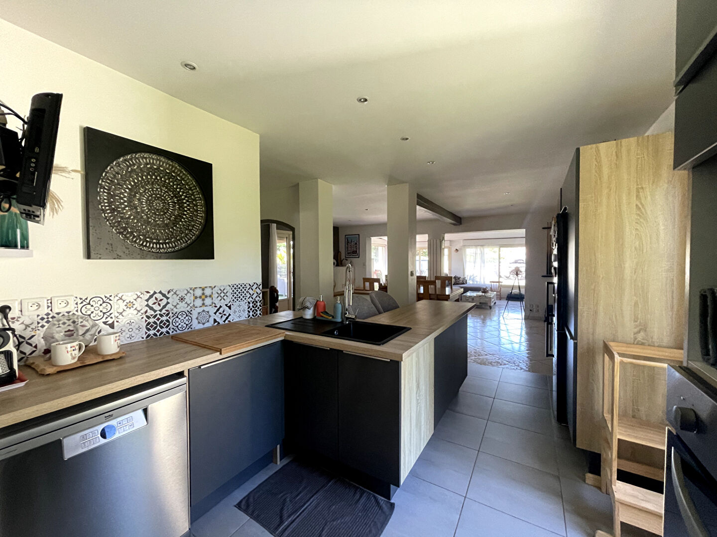 Elle offre un bel espace de vie lumineux composé d'un séjour salle à manger spacieux et conviviale d'environ 75 m², avec insert et une cuisine américaine entièrement aménagée et équipée.