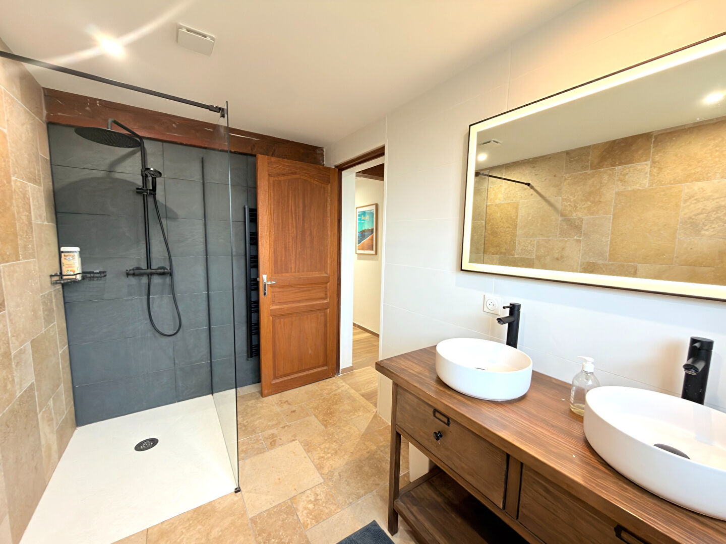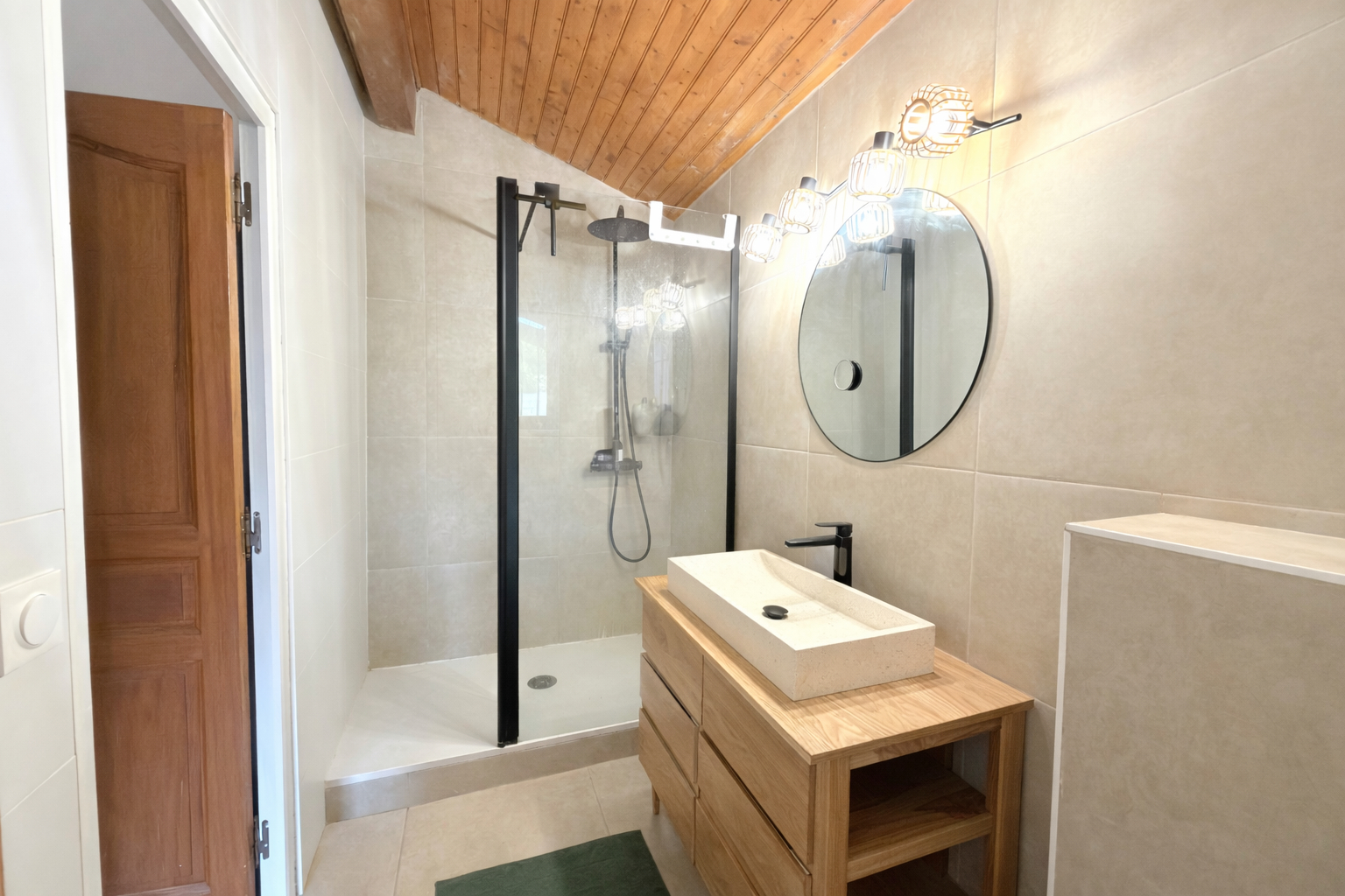 Côté nuit, au rez-de-chaussée vous trouverez deux belles chambres, une salle d'eau avec double vasque et un WC.