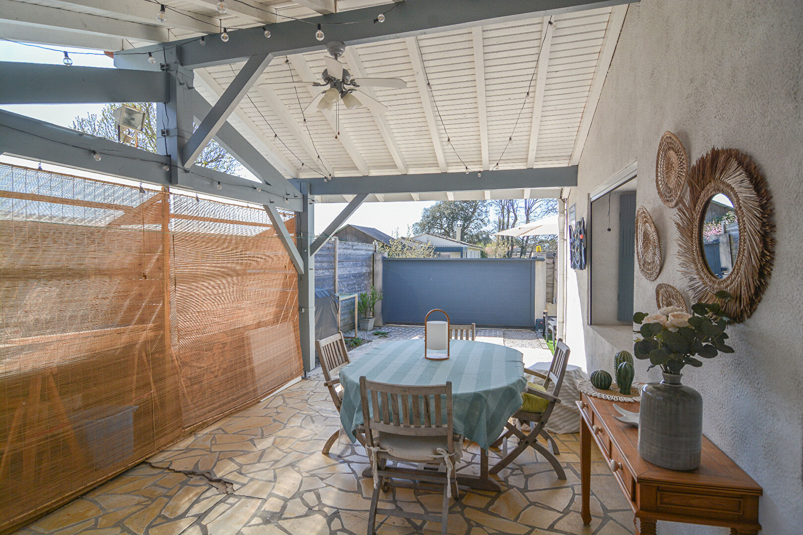 A l'extérieur, la parcelle d'environ 300 m², parfaitement entretenue, offre un cadre agréable et facile à vivre. Vous pourrez profiter d'une terrasse couverte, idéale pour vos repas en extérieur, ainsi que de deux abris de jardin pour le rangement.